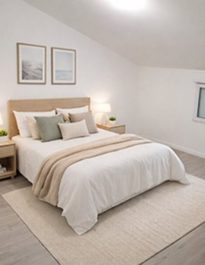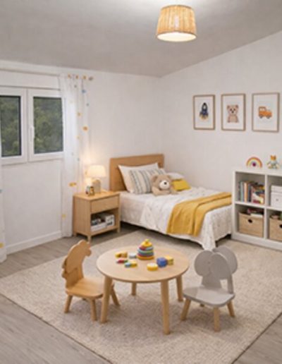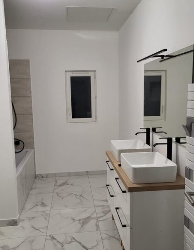 Après notre intervention, chaque pièce a été optimisée pour offrir un cadre de vie lumineux et spacieux. Les murs ont été repeints dans des tons clairs, et de nouvelles fenêtres ont été installées pour maximiser l’entrée de lumière naturelle. Les sols ont été remplacés par un parquet dans les chambres et un carrelage paramétré selon les pièces : salle de bains, salon, séjour, bureaux. L’ensemble des arbres et espaces verts ont été conservés.