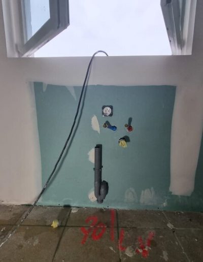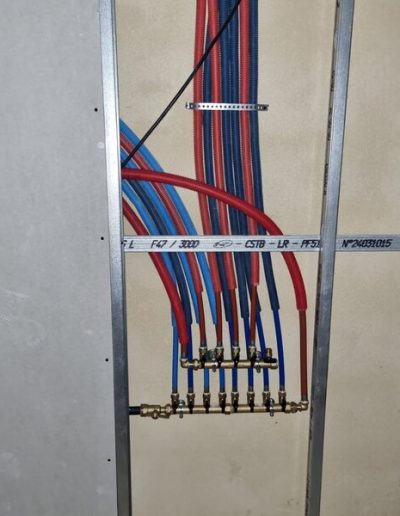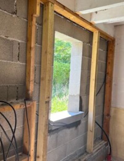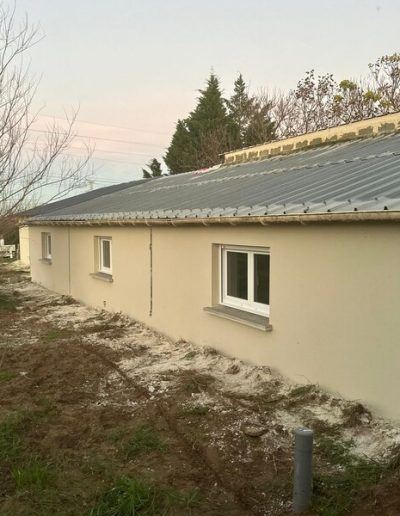 Seuls ont été conservés certains murs et la toiture. Tout le reste du second oeuvre a été entièrement « curé ». Nous sommes donc repartis de zéro. Le processus a été complet : autorisation administrative à obtenir sur la base des plans projetés, dossiers de chiffrage financier et d’implantation techniques auprès des fournisseurs d’énergie, de télécommunications et d’eau. Une étude pour un assainissement individuel moderne : une micro station ne nécessitant pas d’évent, ni de drains d’infiltration. Changement complet des ouvrants, génie civil pour acheminer les nouveaux réseaux, génie civil pour le traitement des eaux pluviales.