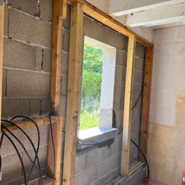 Seuls ont été conservés certains murs et la toiture. Tout le reste du second oeuvre a été entièrement « curé ». Nous sommes donc repartis de zéro. Le processus a été complet : autorisation administrative à obtenir sur la base des plans projetés, dossiers de chiffrage financier et d’implantation techniques auprès des fournisseurs d’énergie, de télécommunications et d’eau. Une étude pour un assainissement individuel moderne : une micro station ne nécessitant pas d’évent, ni de drains d’infiltration. Changement complet des ouvrants, génie civil pour acheminer les nouveaux réseaux, génie civil pour le traitement des eaux pluviales.